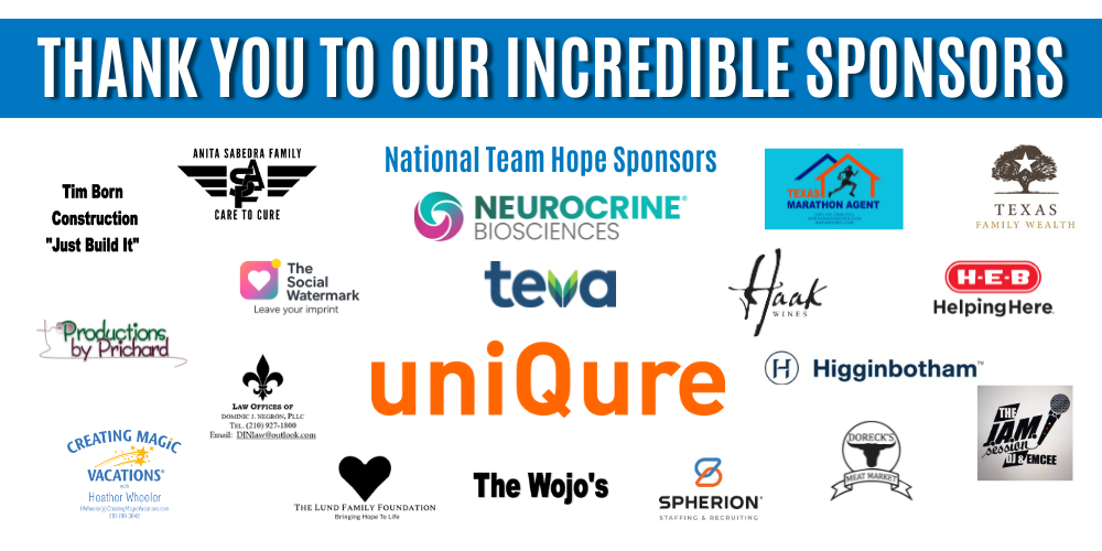 We invite all local companies and small businesses to sponsor this Team Hope Walk. We depend on the generosity of sponsors, and by sponsoring a walk your company will be supporting a great cause as well as engaging in an exciting marketing opportunity within the local community. If your company is interested in sponsoring the walk, please email teamhope@hdsa.org